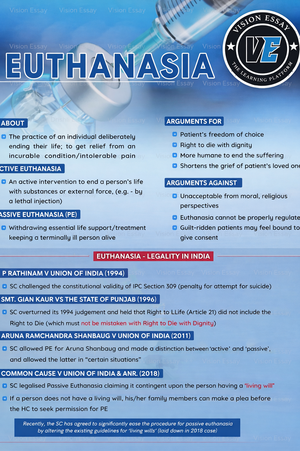 - The Supreme Court amended the 2018 Common Cause guidelines in 2023 to create a two-phase medical evaluation procedure for passive euthanasia: